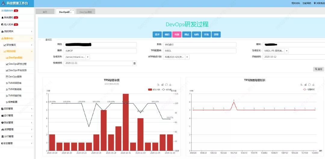 赵:本次参评的项目系统特色可以归结两点:体量大、技术新。首先是用户体量大。手机银行存贷模块用户规模达到亿级,日均交易量为 4000 多万笔,这么大的体量,并且是直接面客,这对整个团队都是一个不小的挑战。另外是开发技术新。手机银行是依托移动开发平台进行开发,前端基于目前 web 三大主流框架之一的 vue 框架,后端基于我行自研的太行框架开发。同时,手机银行采用前端离线包机制,支持热修复,并且实现了离线包星云自动化部署。本次之所以选择该项目作为参评项目,就是要检验一下我行移动金融研发到底有没有能力做到持续交付。当然,整个团队也不负众望,顺利通过了本次评估,这对于 DevOps 在全行的推广都具有标杆性的示范作用。