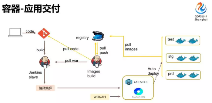 通过与代码管理平台的对接实现提交代码即出发流程,通过jenkins集群构建完成代码编译和镜像构建的全自动化过程,docker单一镜像的交付让测试、预发布、生产环境保持唯一的部署方式和标准化的运维接口。
