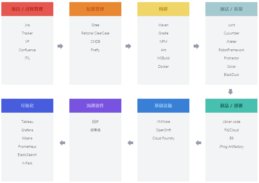 - DevOps 设计工具。帮助您设计组织内的 DevOps 流程,涵盖了流程、人、工具、制品等等。