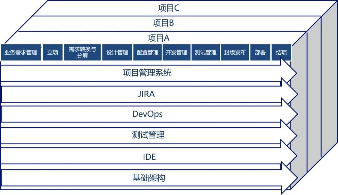 关于DevOps项目的复杂度,我画了一个矩阵图,希望与大家形成共鸣:图的X轴是软件生产的全流程,Y轴是DevOps要集成的各类IT系统,Z轴是要推广的各个项目,从这个图可以看出,要做好DevOps落地,复杂度还是相当高的。