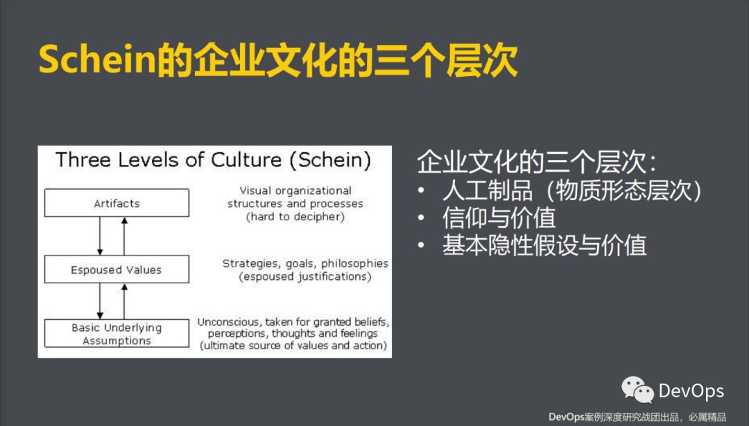 企业文化是很多企业管理者经常挂在嘴边的一个词,也是我们在谈论DevOps、敏捷和精益的时候都不可避免触及的一个话题。但到底什么是企业文化?如果对这个问题的理解有偏差,恐怕很多的讨论都会变成无根之水。沙因将组织文化分为以下三个层次