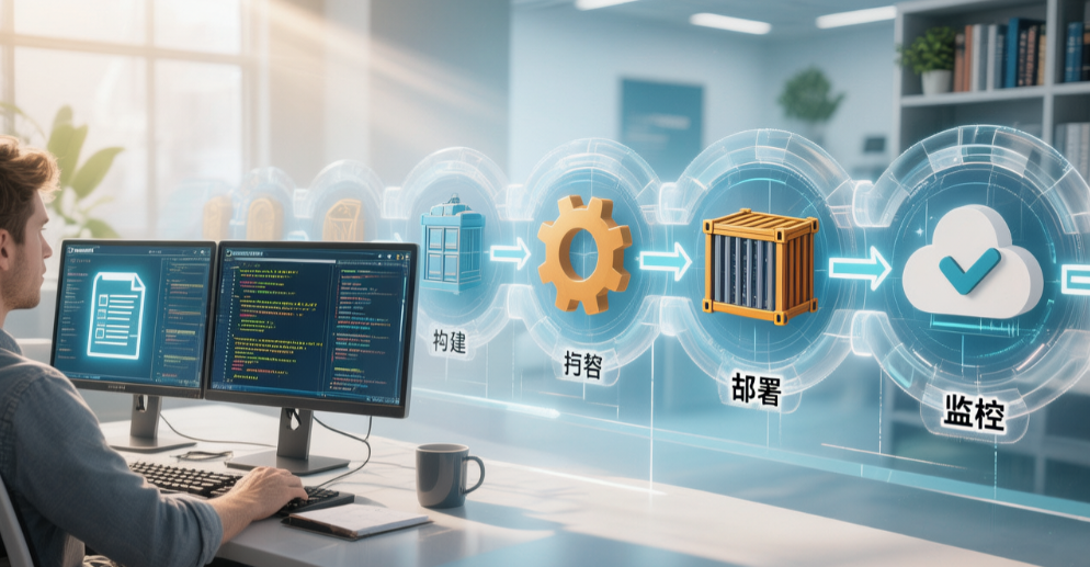 开发团队开始奋笔疾书写代码。此时,DevOps工程师的核心任务是搭建一条自动化的高速公路——CI/CD流水线(持续集成/持续部署)。