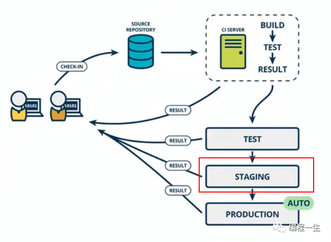 持续交付是指在持续集成基础上将集成后的代码发布到类生产环境(staging)中。