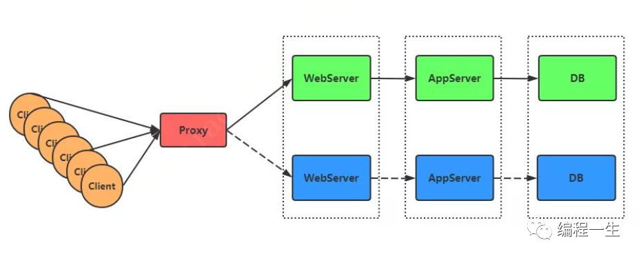 蓝绿部署中,一共有两套系统:一套是正在提供服务系统(也就是上面说的旧版),标记为“绿色”;另一套是准备发布的系统,标记为“蓝色”。两套系统都是功能完善的,并且正在运行的系统,只是系统版本和对外服务情况不同。正在对外提供服务的老系统是绿色系统,新部署的系统是蓝色系统。